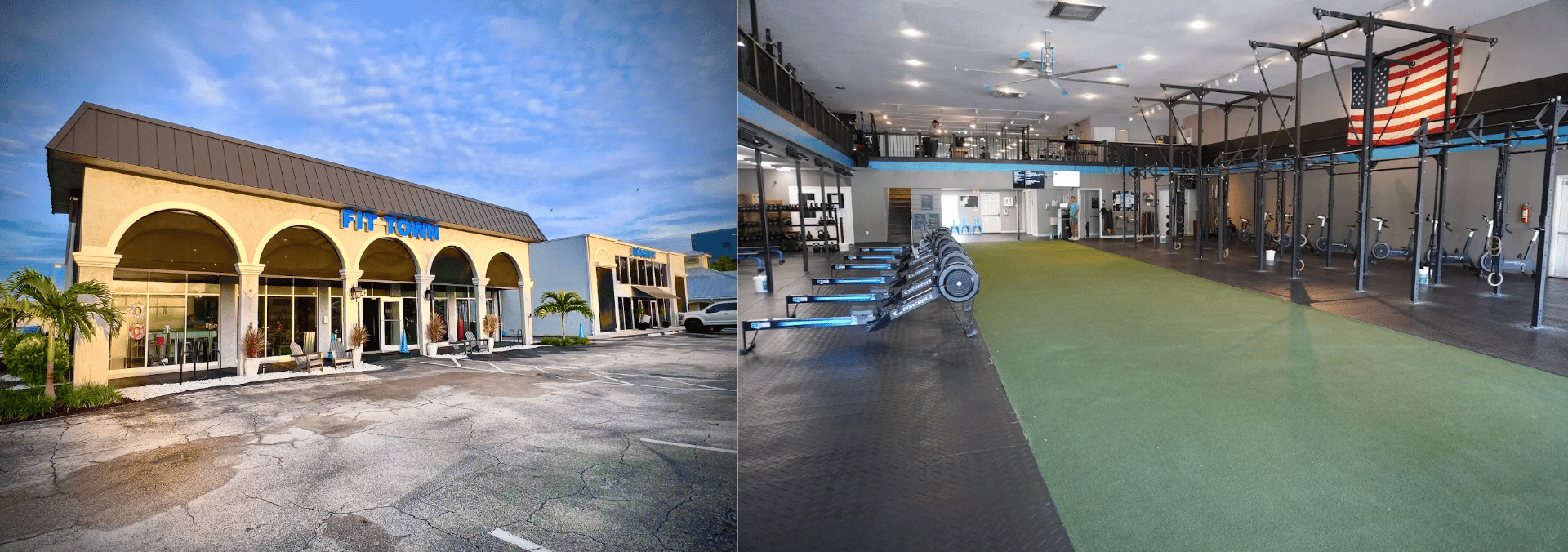 The exterior and interior of FitTown Jupiter, Andrew’s former gym